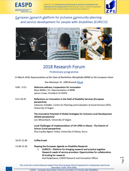 Dienstleistungen für Behinderte sind ein wesentliche Stütze der ambulanten Unterstützung. Bei diesem Forum tauschten sich Wissenschaftler und Praktiker aus verschiedenen europäischen Ländern schnittstellenübergreifend aus. Angehörige werden bislang wohl eher am Rand als Beteiligte gesehen. Die Teilnehmer standen dem Gedanken sie mehr mit einzubeziehen durchaus aufgeschlossen gegenüber. Vielleicht muss einfach ein Anfang gemacht werden?
