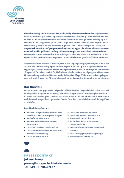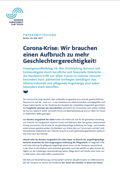 Bündnis Sorgearbeit fair teilen: Presseerklärung zum Frauengesundheitstag 2021