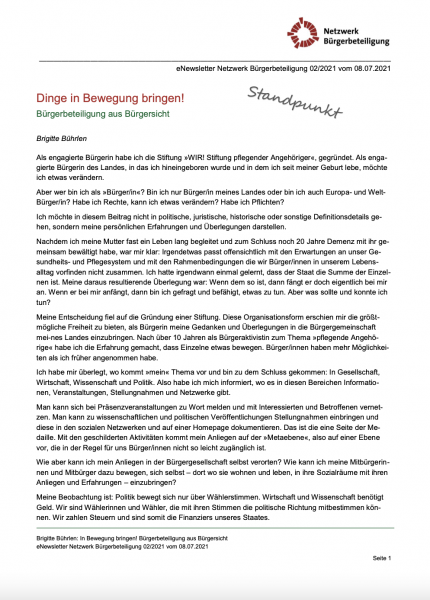 „Dinge in Bewegung bringen! Bürgerbeteiligung aus Bürgersicht“