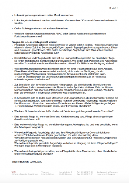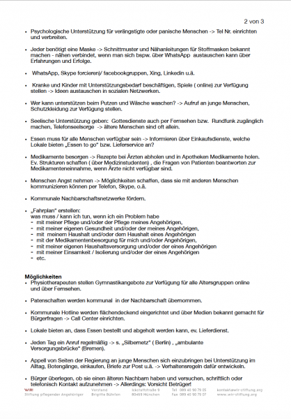 * Themenpapier Corona Virus *: „Alltagsleben von älteren Menschen mit Unterstützungsbedarf, Pflegenden Angehörigen und sonstigen Unterstützenden während der Corona Krise“
